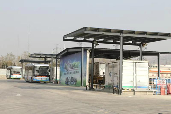 在張家口,目前唯一一座加氫站由北京億華通科技股份有限公司(下稱“億華通”)運(yùn)營(yíng)。該企業(yè)自2004年開始從事氫燃料電池發(fā)動(dòng)機(jī)的研發(fā)與產(chǎn)業(yè)化。11月2日上午10時(shí)許,在加氫站的10分鐘內(nèi),3輛氫燃料電池車陸續(xù)駛?cè)爰託?。億華通動(dòng)力商務(wù)總監(jiān)史建男介紹,這座臨時(shí)簡(jiǎn)易加氫站每天能為七八十輛燃料電池車提供24小時(shí)加氫服務(wù)。為保障氫氣來源,億華通旗下子公司張家口海珀?duì)栃履茉纯萍加邢薰荆ㄏ路Q“海珀?duì)?rdquo;)還在張家口建立了水電解制氫廠。